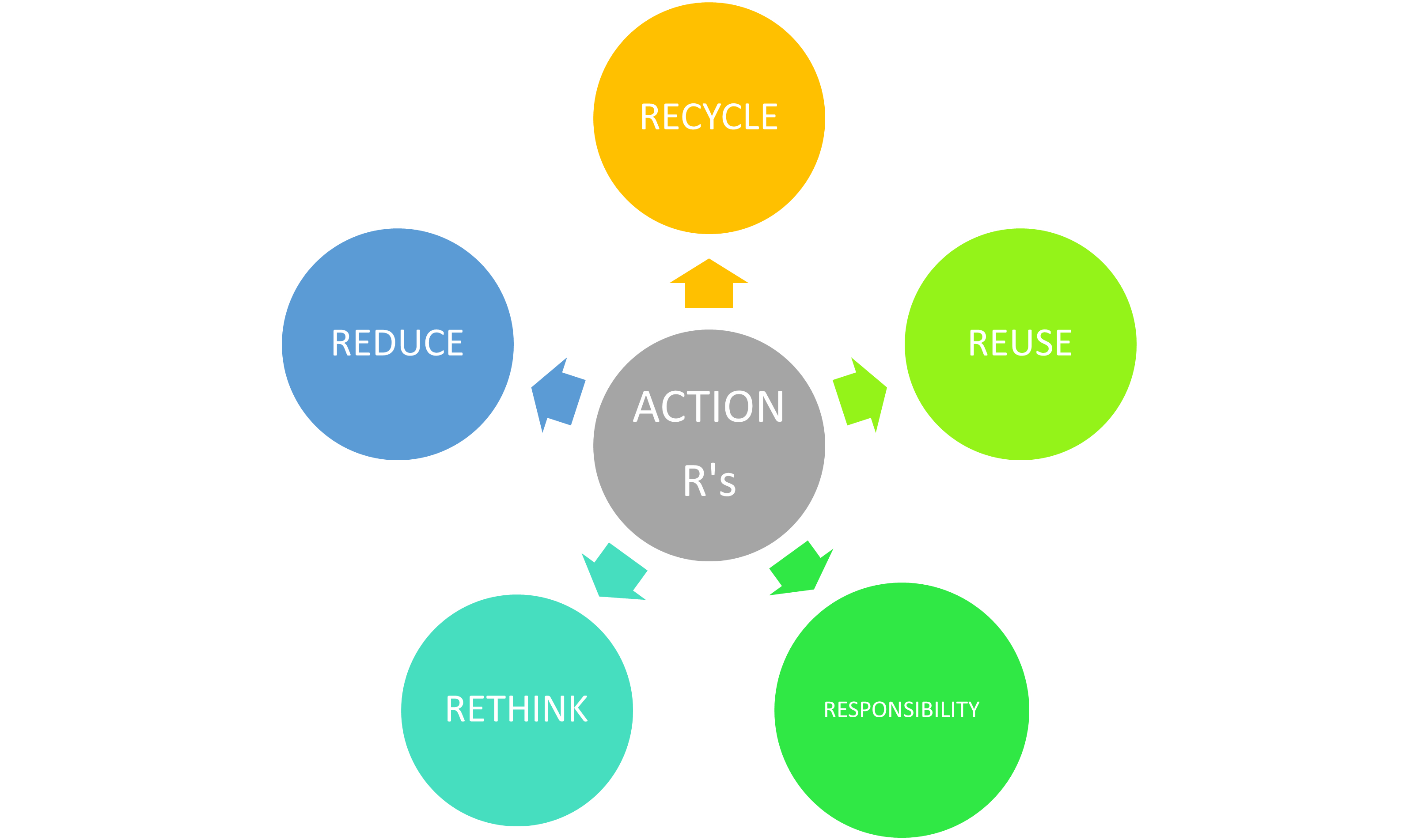 Rethink - consider alternative sources of energy/materials- design for reuse/repurpose- be innovative
