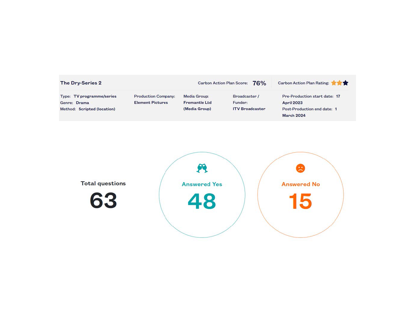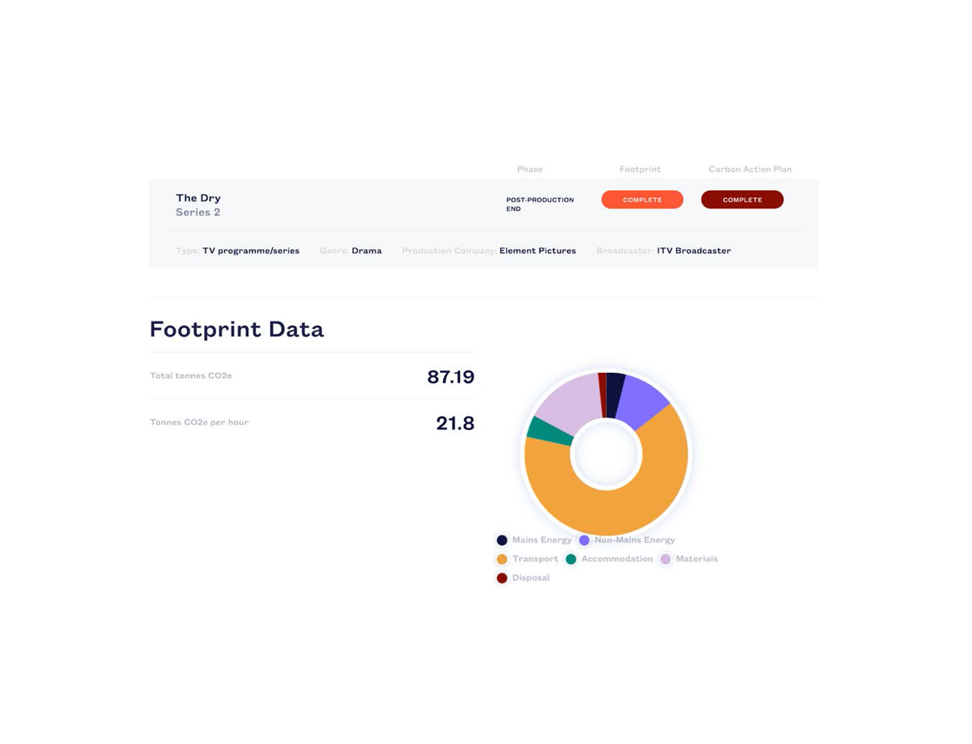 At the end of the production, including post production, the final footprint came to 87.19 tonnes. The production opted to offset the footprint of the production, and this came to a total of £915.48.