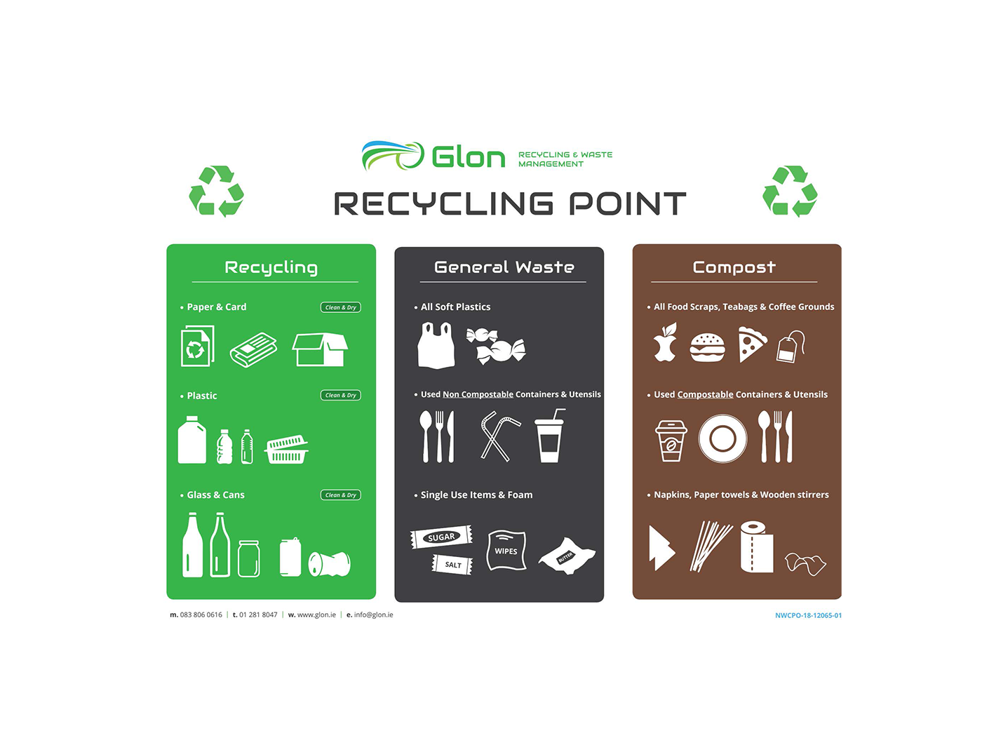 Only DRY, CLEAN cardboard, plastic, cans and glass into the recycling.