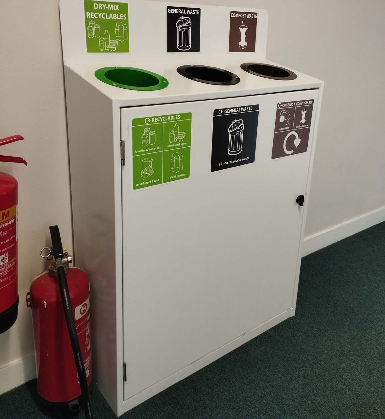 The set dec department also used a three bin recycling set up in one of the scenes. Not only did this help promote and normalise sustainability on screen, but instead of purchasing one of these setups new, they borrowed one from the Irish Management Institute that served as the production office.